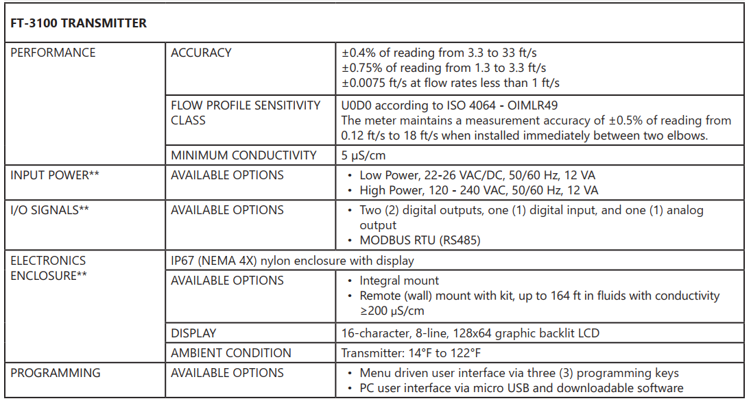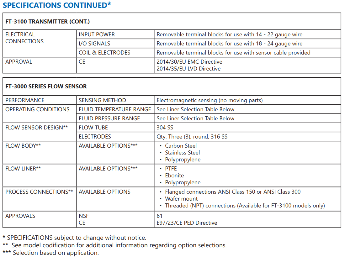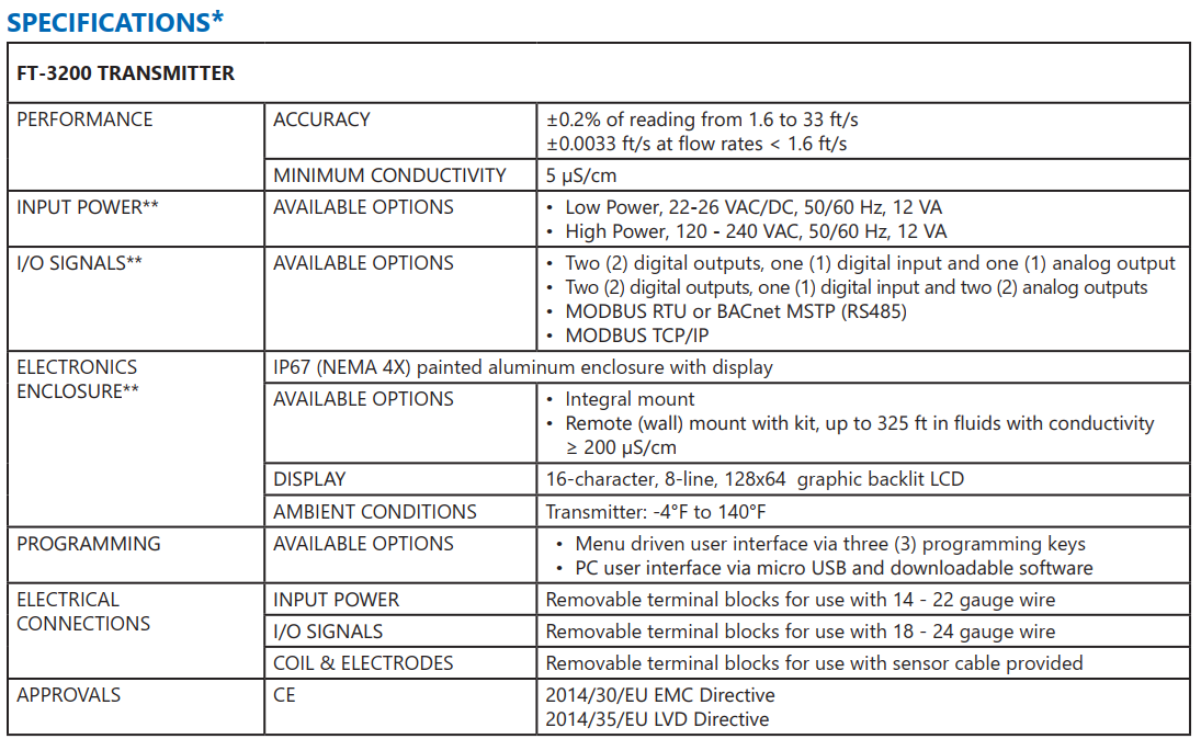 The FT-3000 Inline Electromagnetic Flow Meters are available in various sizes and arrive factory-configured for ease of installation and start-up. All FT-3000 series flow meters are wet calibrated in a flow laboratory against standards that are directly traceable to international standards. A certificate of calibration accompanies every meter. Typical applications include monitoring of cooling water, heating water, condenser water and domestic water.